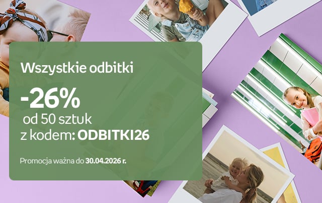 Od lat dbamy o Twoje zadowolenie wykonując corocznie miliony odbitek i tysiące usług fotograficznych. Specjalnie dla Ciebie rozwijamy stale naszą ofertę umożliwiając Ci wywołanie zdjęć w dowolnym formacie, przygotowanie fotoksiążki, a także wykonanie prawie nieograniczonej ilości personalizowanych prezentów – kubków, koszulek, poduszek, maskotek, puzzli czy etui na telefon z nadrukiem wykonanym z Twojego zdjęcia. Jesteśmy najpopularniejszym serwisem z odbitkami w Polsce i cenimy sobie Twoją satysfakcję z jakości i szybkości naszych usług, dlatego też każda Twoja uwaga jest dla nas bardzo cenna