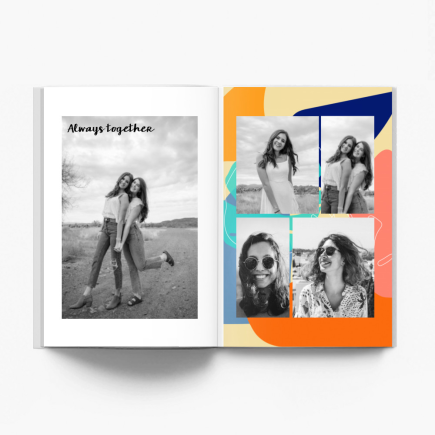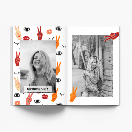 Szablon fotoksiążki “Dla przyjaciółki”. Stwórz wyjątkowy projekt jako pamiątkę dla Ciebie lub prezent dla bliskiej osoby. Wybierz format fotoksiążki, rodzaj papieru oraz okładki, dodaj wybrane zdjęcia i uzupełnij szablon według własnej koncepcji. Każdy projekt możesz dowolnie personalizować poprzez zmianę tła, dodanie napisów i klipartów.