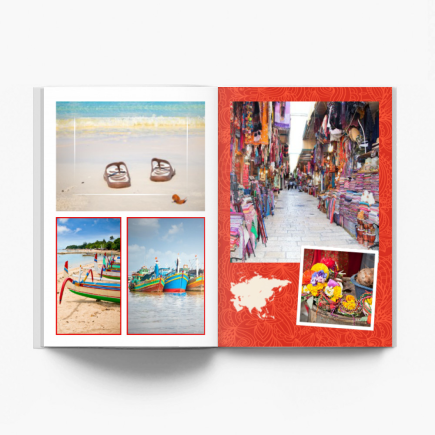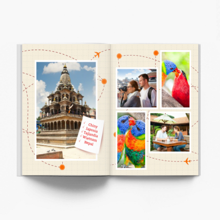 Z pewnością posiadasz masę zdjęć ze swojej podróży. Czas je wszystkie poukładać! Stwórz wyjątkowy album wypełniony po brzegi Twoimi wakacyjnymi wspomnieniami! Wybierz ulubione zdjęcia z podróży i wykorzystaj nasz szablon, który przygotowaliśmy specjalnie dla Ciebie. Takie wspomnienia wymagają odpowiedniej oprawy! Zainspirowani smakami i kolorami Azji zaprojektowaliśmy wzór, który idealnie skomponuje się ze zdjęciami z Twojej wyprawy. Barwne tła zdobione typowo azjatyckimi motywami, smoki, lampiony, chińskie znaki i szereg innych elementów dekoracyjnych, które możesz wykorzystać w dowolny sposób. Dodaj także mapy i kompas, aby nadać swojej fotoksiążce jeszcze bardziej podróżniczego charakteru! Zostaw własne komentarze, wykorzystaj ramki i wracaj do Azji, kiedy tylko zechcesz!