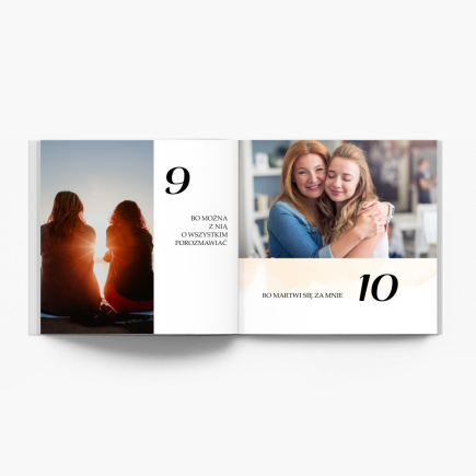 Podaruj swojej mamie wzruszający prezent. Wybierz Wasze ulubione zdjęcia i zapisz na kartkach fotoksiążki 12 powodów, dla których jest najlepszą mamą na całym świecie!
