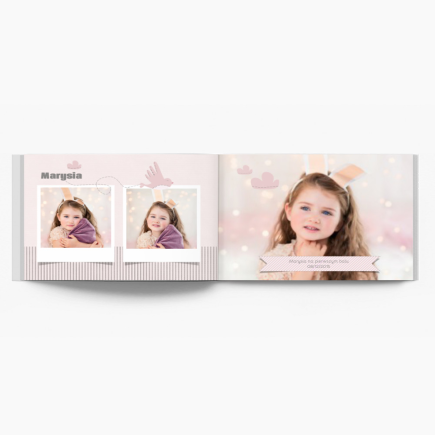 Specjalnie dla Was, drodzy rodzice, przygotowaliśmy ten szablon. Wybierzcie najsłodsze zdjęcia Waszej cudownej pociechy i stwórzcie wyjątkową fotoksiążkę, która pozwoli Wam sięgać pamięcią do pierwszych momentów razem. Postawiliśmy na typowo dziewczęce motywy. Różowe tła świetnie skomponują się ze zdjęciami maleństwa, a przeurocze kliparty dodadzą im dziecięcego charakteru.