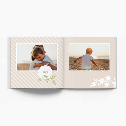 Szablon dedykujemy tym, którzy kochają rodzinne spotkania. Te długie i te krótkie. Spontaniczne i zaplanowane. Z powodu ważnych okazji i te zupełnie bez powodu. Bez względu na to czy spotykasz się z całą rodziną czy może w mniejszym gronie, z pewnością kochasz te beztroskie momenty, które razem dzielicie! I z pewnością również posiadasz całą masę zdjęć, która pozwala Ci sięgać pamięcią wstecz do najprzyjemniejszych chwil spędzonych razem! Urodziny siostry? Jubileusz dziadków? Ślub kuzyna? A może urodziny Twojej małej pociechy? Postanowiliśmy Ci pomóc i wraz z Tobą ułożyć wszystkie Twoje fotografie. Skorzystaj z naszego szablonu i zaprojektuj fotoksiążkę, która pomieści tyle wspomnień ile tylko zechcesz. Nie bez powodu zdecydowaliśmy się na bardzo spokojną i pastelową kolorystykę teł. Dzięki ciepłym barwom, nasz wzór stał się nad wyraz uniwersalny, a Ty możesz wykorzystać właściwie dowolny typ fotografii. Statyczne ujęcia i spokojne portrety obok dynamicznych kadrów pełnych beztroskiej zabawy? Oczywiście! Wybierz ulubione i ułóż je tak, jak tylko zechcesz. Wykorzystaj nasze delikatne ornamenty i ozdobne ramki, dodaj opisy i komentarze i ciesz się wyjątkowym albumem kiedy tylko zechcesz! Masz ochotę obdarować nim swoich najbliższych? W końcu to oni dzielili z Tobą wszystkie te chwile! Z pewnością byliby zachwyceni tak nietuzinkowym prezentem!