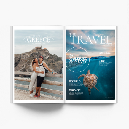 Magazyn personalizowany „Travel” to idealna oprawa dla zdjęć z podróży. Możesz opowiedzieć historię swojej wyprawy krok po kroku, dodając zdjęcia i wspomnienia. Projekt inspirowany magazynami podróżniczymi nadaje całości nowoczesny charakter. To świetna propozycja dla miłośników przygód i odkrywania świata.