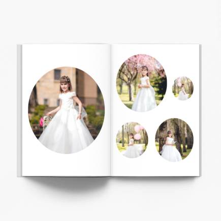Prosty szablon graficzny bazujący jedynie na białych tłach i układach zdjęć. W lewej kolumnie edytora znajdziesz cliparty nawiązujące do pierwszej komunii świętej. Dzięki temu możesz stworzyć swój własny niepowtarzalny projekt z tej wyjątkowej okazji.
