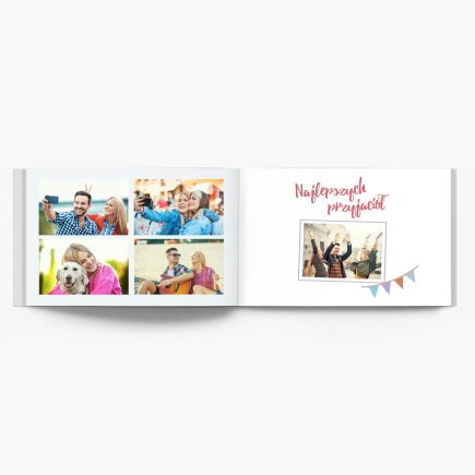 Szukasz wyjątkowego prezentu na urodziny bliskiej Ci osoby? Specjalnie na tę okazję stworzyliśmy gustowny szablon przyozdobiony urodzinowymi motywami. W środku znajdziesz m.in. barwne girlandy, świeczki, ozdobne serpentyny, a także kaligrafowane życzenia i cyfry, po to, by jak najbardziej spersonalizować wnętrze albumu. Fotoksiążka jest stonowana i uniwersalna w swojej stylistyce, odpowiednia zarówno dla starszych jak i młodszych solenizantów. Podaruj bliskiej Ci osobie album wypełniony zdjęciami pełnymi wspomnień i wyjątkowych chwil.