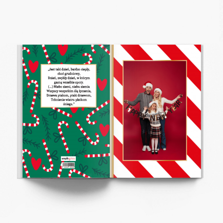 Stwórz magiczną świąteczną pamiątkę, która ożywi wspomnienia z wyjątkowych chwil spędzonych z najbliższymi. Nasza Fotoksiążka świąteczna to idealny sposób, aby zebrać wszystkie najpiękniejsze zdjęcia z Bożego Narodzenia w eleganckiej oprawie, którą będziecie mogli przeglądać przez lata. Uwiecznij ciepło rodzinnych spotkań i podaruj sobie oraz bliskim emocjonalny powrót do tych chwil za każdym razem, gdy otworzycie tę wyjątkową książkę
