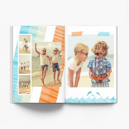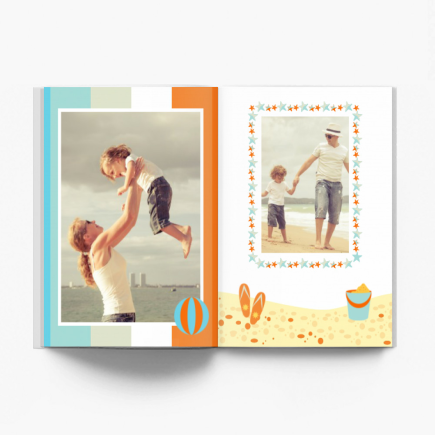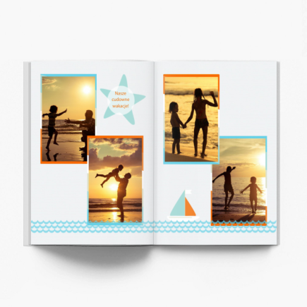 Z pewnością posiadasz całą masę wakacyjnych zdjęć w swoim domowym archiwum, prawda? Czas je wreszcie poukładać i wracać na plażę, kiedy tylko zechcesz. Ten szablon przygotowaliśmy z myślą o Tobie. Zawarliśmy w nim definicję słowa „morze” – promienie słońca, szumiące fale rozbijające się o brzeg, muszelki i plażowe sporty! Wybierz swoje ulubione zdjęcia z tego lata i skomponuj fotoksiążkę pełną wakacyjnych wspomnień! Wracaj nad morze każdego dnia! Co najlepiej wspominasz ze swojego wyjazdu? Długie wieczory spędzane na plaży, gdy za horyzontem powoli znikało różowe słońce? A może upalne dni i mecze siatkówki? Spacery w porcie i zbieranie muszelek? Zbierz wszystkie swoje fotografie i stwórz wakacyjny album, który pozwoli Ci wspominać najbardziej beztroskie chwile tego roku! Jasne, pastelowe tła w letnich kolor idealnie skomponują się z Twoimi kadrami, a kliparty, które dla Ciebie przygotowaliśmy dodadzą im jeszcze więcej wakacyjnego charakteru. Zaaranżuj każdą stronę osobno wykorzystując ramki i podpisy! Dodaj własne komentarze i na zawsze zachowaj każdą chwilę morskich wakacji! Ahoj!