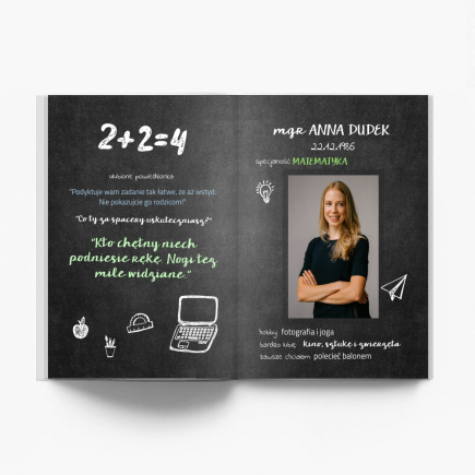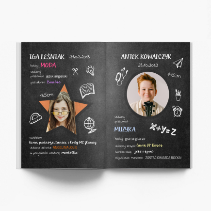 Fotoksiążka "Złote myśli naszej klasy". Stwórz wyjątkowy projekt jako pamiątkę dla Ciebie lub prezent dla bliskiej osoby. Wybierz format fotoksiążki, rodzaj papieru oraz okładki, dodaj wybrane zdjęcia i uzupełnij szablon według własnej koncepcji. Każdy projekt możesz dowolnie personalizować poprzez zmianę tła, dodanie napisów i klipartów.