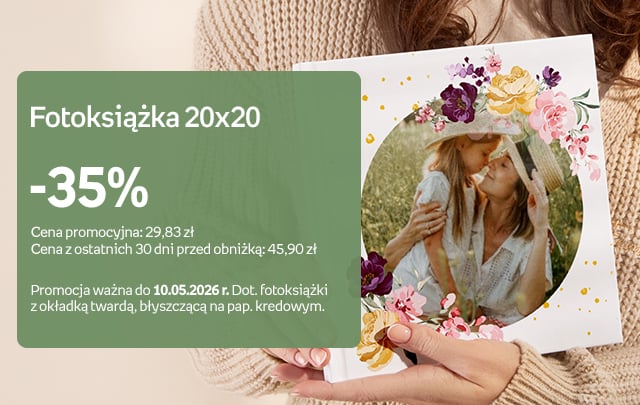 Fotoksiążka to coś więcej niż album. To zupełnie nowy wymiar prezentowania fotografii w wersji papierowej, który pozwala zachować najcenniejsze wspomnienia w najlepszej postaci. Bez względu na to, czy urodziło Ci się dziecko, czy zakończyła się właśnie podróż Twoich marzeń, czy może poszukujesz najciekawszej formy swojego albumu ślubnego, empikfoto przygotował dla Ciebie niepowtarzalne rozwiązanie.Fotoksiążka to fantastyczna pamiątka, która może być jednocześnie Twoim pierwszym, w pełni spersonalizowanym projektem fotograficznym.Wybierać możesz spośród czterech rozmiarów, kilku rodzajów papieru, wielu teł, ramek i obrazków, które wzbogacą Twoją historię i nadadzą jej niepowtarzalnego klimatu – dokładnie takiego, jaki panował podczas robienia zdjęć. Nadaj książce własny tytuł, wybierz okładkę i ułóż swoje fotografie w dowolnej kolejności, aby raz na zawsze zatrzymać najważniejsze dla siebie chwile. Fotoksiążka to także idealny prezent dla kogoś szczególnego – włóż w swoje zdjęcia jeszcze więcej siebie i dziel się pięknymi wspomnieniami z najbliższymi. Możliwości fotoksiążki są nieskończone, a jedyne co Cię ogranicza to Twoja wyobraźnia!
