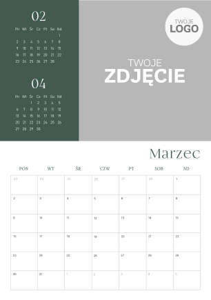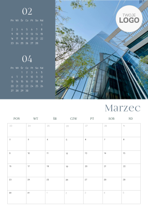 Swoje logo można umieścić na okładce kalendarza - w centralnej części lub górnej.