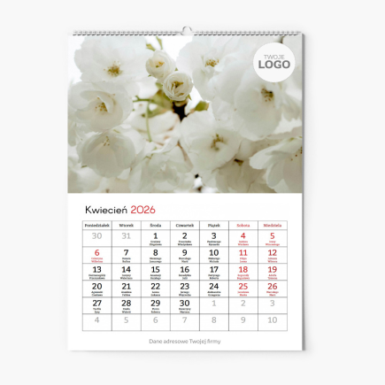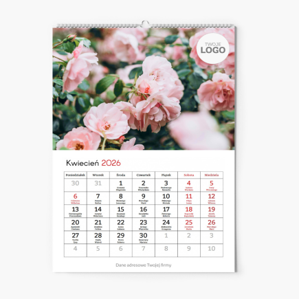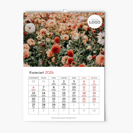 Kalendarz ścienny, Kwiatowy z logo, 30x40-A3 cm