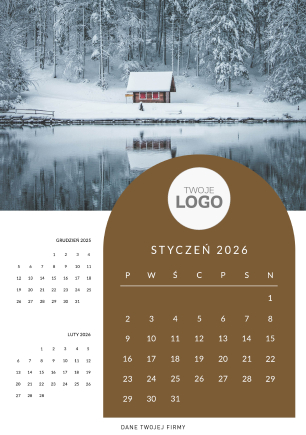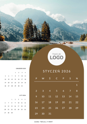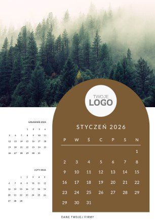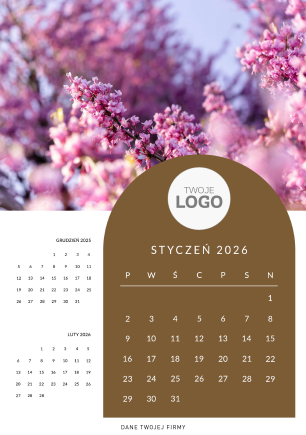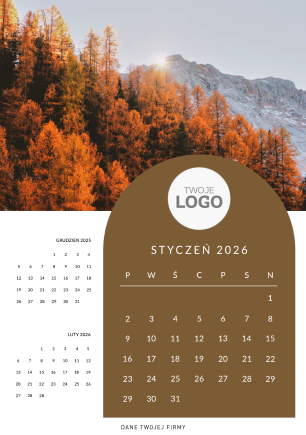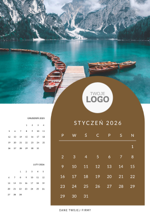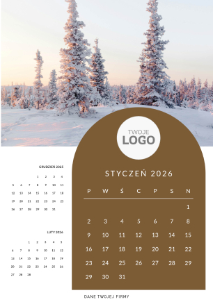 Swoje logo można umieścić na okładce kalendarza - w centralnej części lub górnej.
