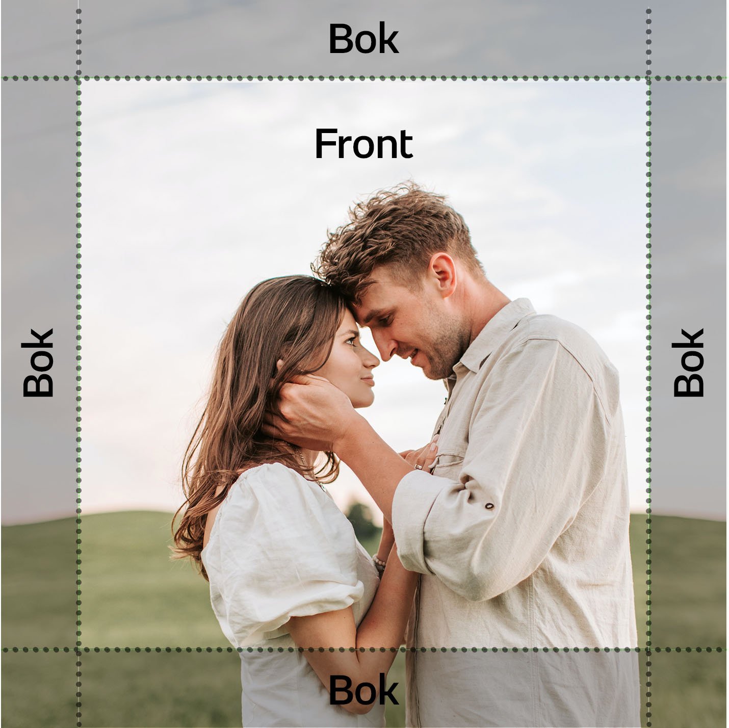 Obszar za przerywaną linią to boki obrazu (owijka) – nie umieszczaj tam ważnych elementów.
