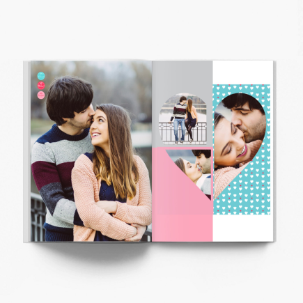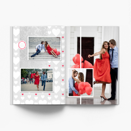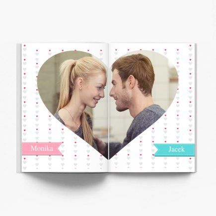 Stworzyliśmy wzór łącząc miłosne motywy ze współczesną stylistyką. Odeszliśmy od klasycznych rozwiązań i przygotowaliśmy nowoczesny szablon, który teraz oddajemy do Waszej dyspozycji. To od Was zależy ostateczna forma Waszej fotoksiążki. Ważne, abyście zapełnili ją Waszymi najbardziej romantycznymi wspomnieniami! Wybierzcie wspólnie Wasze ulubione fotografie. Pierwszy spacer? Pierwsza randka? Pierwszy wspólny wyjazd? Wszystkie wakacje, rocznice i kolacje w świetle świec? Zabawcie się formą i przygotujcie dowolne kompozycje! W Wasze ręce oddajemy ogromną ilość teł, które z pewnością idealnie skomponują się z Waszymi kadrami. Postawiliśmy na bardzo jasną i ciepłą kolorystykę, a minimalistyczne tła upstrzyliśmy pstrokato ręcznie malowanymi sercami i szlaczkami. Ot, taka nasza wariacja na temat miłości. Wybierzcie odpowiednie ramki – te bardziej finezyjne lub zwyczajnie proste. Połączcie dowolnie kolory, dodajcie własne opisy i stwórzcie fotoksiążkę, która będzie w pełni spersonalizowana. Zróbcie sobie małą niespodziankę i na zawsze zachowajcie te momenty, do których tak bardzo kochacie powracać! Do dzieła!