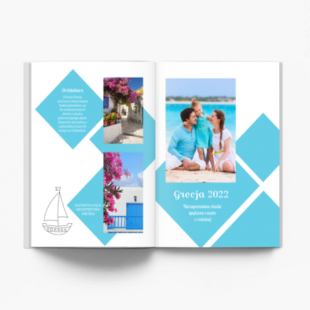 Jeden z szablonów z serii "Wakacyjna przygoda". Proponujemy Wam szablon z motywami grackimi. Jeśli byliście na wakacjach w Grecji i chcielibyście dodać trochę smaczku swoim fotografiom - polecamy wykorzystanie grafik z tego szablonu. Tła w kolorach greckiej flagi, cliparty nawiązujące do grackich wspaniałych zabytków, plaż. W szablonie znajdziesz mapki, na których zaznaczysz miejsca pobytu podczas wakacji.