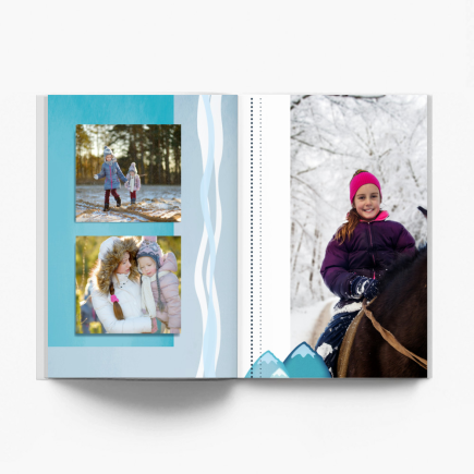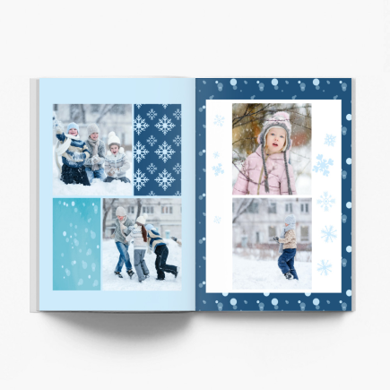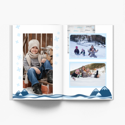 Bez względu na to w jaki sposób Ty i Twoja rodzina korzystacie z zimowych atrakcji, z całą pewnością posiadasz całą masę mroźnych zdjęć w swoim archiwum! A ten szablon przygotowaliśmy właśnie na taką okazję. To wzór, który fantastycznie skomponuje się z plenerowymi fotografiami wykonanymi zimą i doda im śnieżnego charakteru powodując, że Twój album stanie się fotoopowieścią o szalonych przygodach w białym puchu!