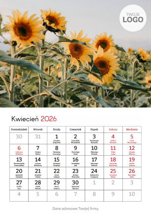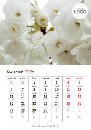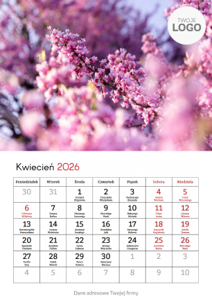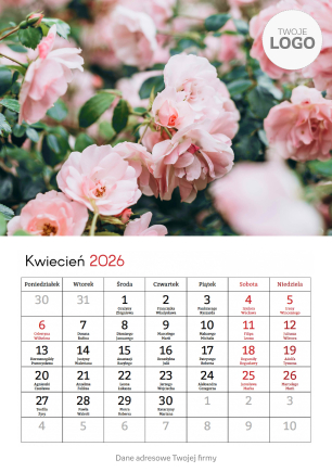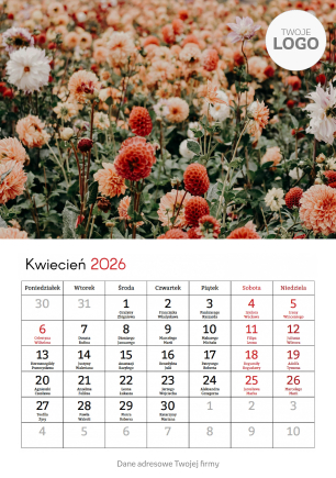 Kalendarz ścienny, Kwiatowy z logo, 30x40-A3 cm