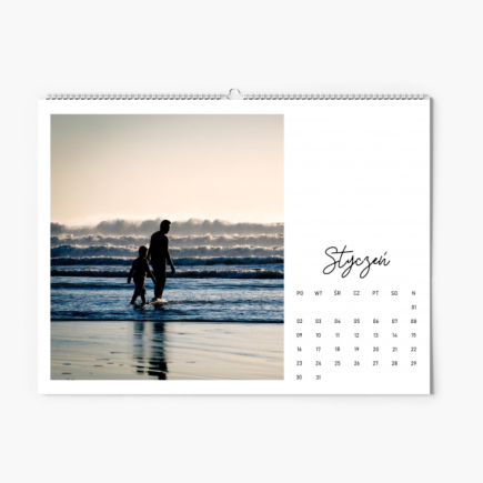 Klasyczna i przejrzysta kompozycja będzie doskonałym tłem dla dowolnego typu fotografii. Chcesz upamiętnić wyjątkowe chwile, rocznice lub fajny wypad za miasto? Masz ciekawe panoramy, portrety lub zdjęcia rodzinne? To jest Twój projekt i Twój kalendarz – możesz dodać wszystkie zdjęcia, które chciałbyś oglądać częściej. Stwórz fotokalendarz, który będzie szyty na miarę. Z pewnością ten szablon doskonale będzie się prezentował w każdej przestrzeni, a jego czysta forma gwarantuje funkcjonalność. Dobry pomysł na prezent dla perfekcjonistów i ludzi, którzy cenią sobie ładne rzeczy. Dzięki naszemu edytorowi możesz dodać dowolne podpisy pod zdjęciami i sprawić, że ten kalendarz będzie naprawdę nieprzeciętny.